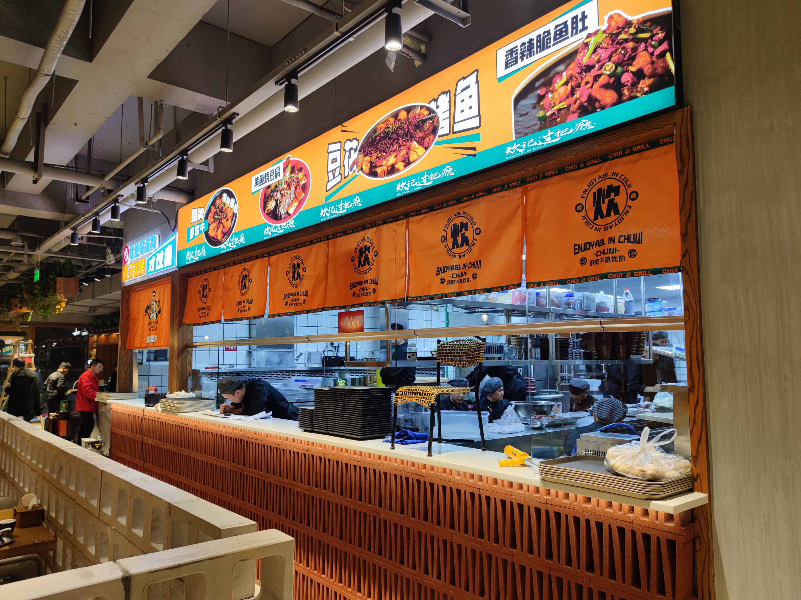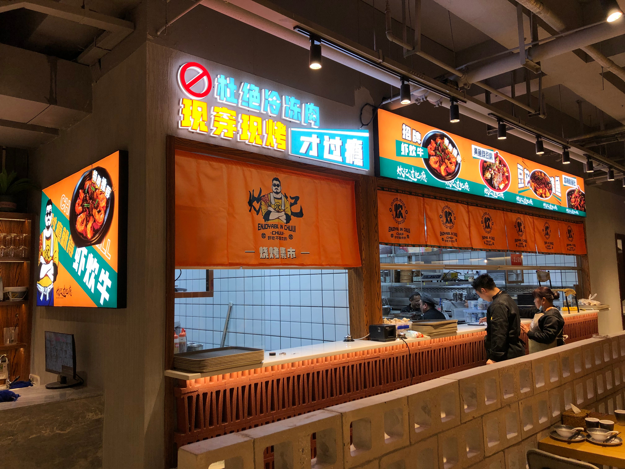2023年,炊记过把瘾烧烤与麦尚正式启动深度战略合作,从品牌顶层视觉、SI门头设计、店内物料等方面进行设计,店内环境以工业风为主,搭配暖光灯带,氛围感强,年轻感、亲和力,极具辨识度及品牌感,让炊记过把瘾烧烤精准契合当下消费趋势,全面绽放品牌新活力!